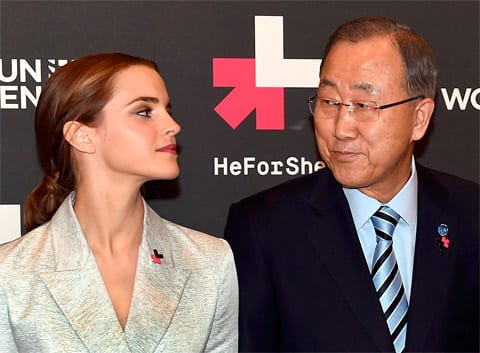 Azda najznámejším činom v rámci kampane bol príhovor Emmy Watson z roku 2014 na pôde OSN. Emma bola v tom čase ambasádorkou UN Woman a týmto počinom spustila kampaň HeForSHe pre rok 2014. Emotívny a zamyslenia hodný prejav vtedy obletel svet a k boju za rovnoprávnosť sa pridali mnohé ďalšie celebrity. Myšlienku podporili napr. Jared Leto, Harry Styles, Logan Lerman, Chris Colfer, Eddie Redmayne, Tom Hiddleston, Joseph Gordon-Levitt, Peter Gallagher, Mark Ruffalo, Neil Gaiman, Russell Crowe a ďalší.