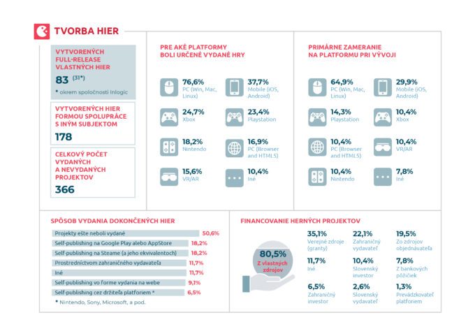 V roku 2024 domáci vývojári vydali 83 vlastných hier a formou spolupráce s inými subjektmi vzniklo 178 projektov. Celkovo sa pracuje na viac než 366 pripravovaných hrách, pričom najväčšími cieľovými platformami pri vydaní sú PC (76,6%), mobilné zariadenia (37,7%), Xbox konzoly (24,7%), Playstation konzoly (23,4%) a konzoly od Nintenda (18,2%).